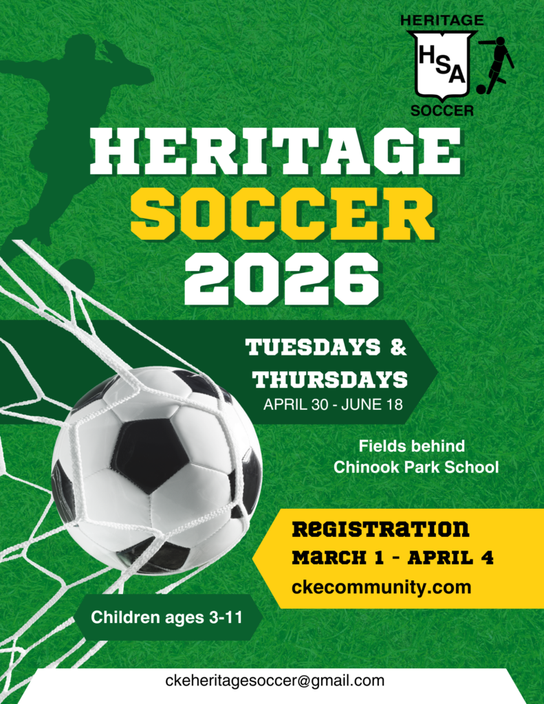 Back To Events Calendar This event has passed. Heritage Soccer Registration March 1 @ 12:00 am - April 4 @ 11:30 pm « CKE Community Garden Annual Movie Night Community Garden Meet & Greet » Register a Player Register as a Coach Add to calendar Google Calendar iCalendar Outlook 365 Outlook Live Details Start: March 1 @ 12:00 am End: April 4 @ 11:30 pm Event Category: Featured Venue Online Alberta Canada Organizer Heritage Soccer